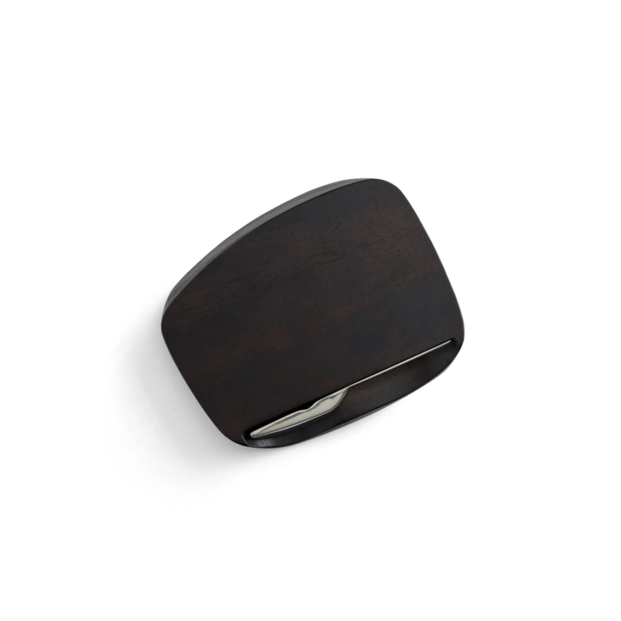 The Blend Bar Board w/ Knife in an espresso finish is the perfect size for cutting lemons, limes and other drink garnishes. An ideal way to keep the bar surface high-style and low-clutter during cocktail hour, the knife fits into a groove on the side of the board and is held in place magnetically.