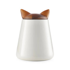 It is a cute storage container with a porcelain base and wood lid that seals tightly to...