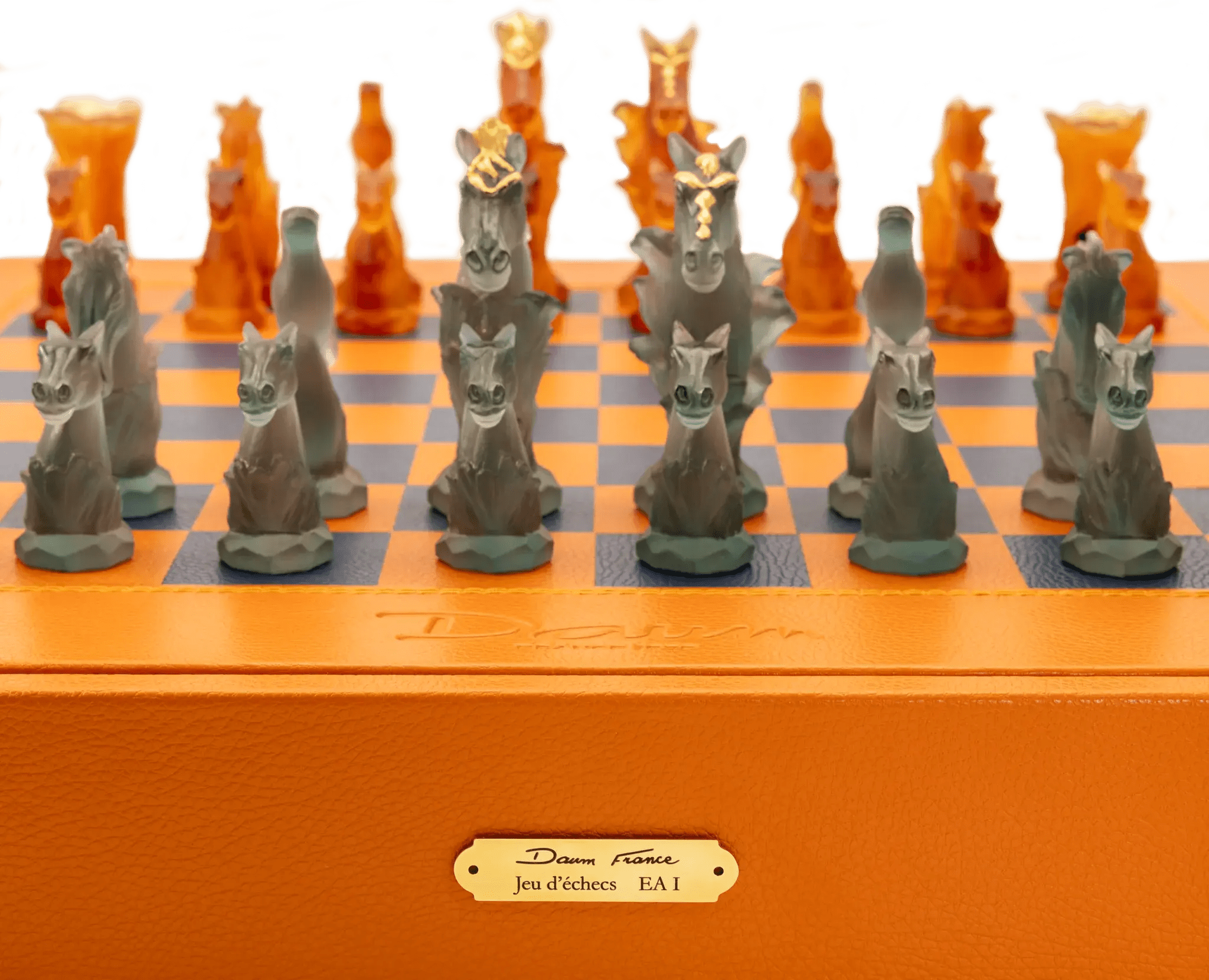 Introducing the Cavalcade Chess Game by Maison Daum—an exquisite fusion of artistry and strategy. Each meticulously crafted piece reflects Daum's legacy of exceptional craftsmanship. Elevate your game with this masterpiece, where every move becomes a captivating work of art. Own the epitome of style and sophistication in chess. Discover the art of strategic elegance.