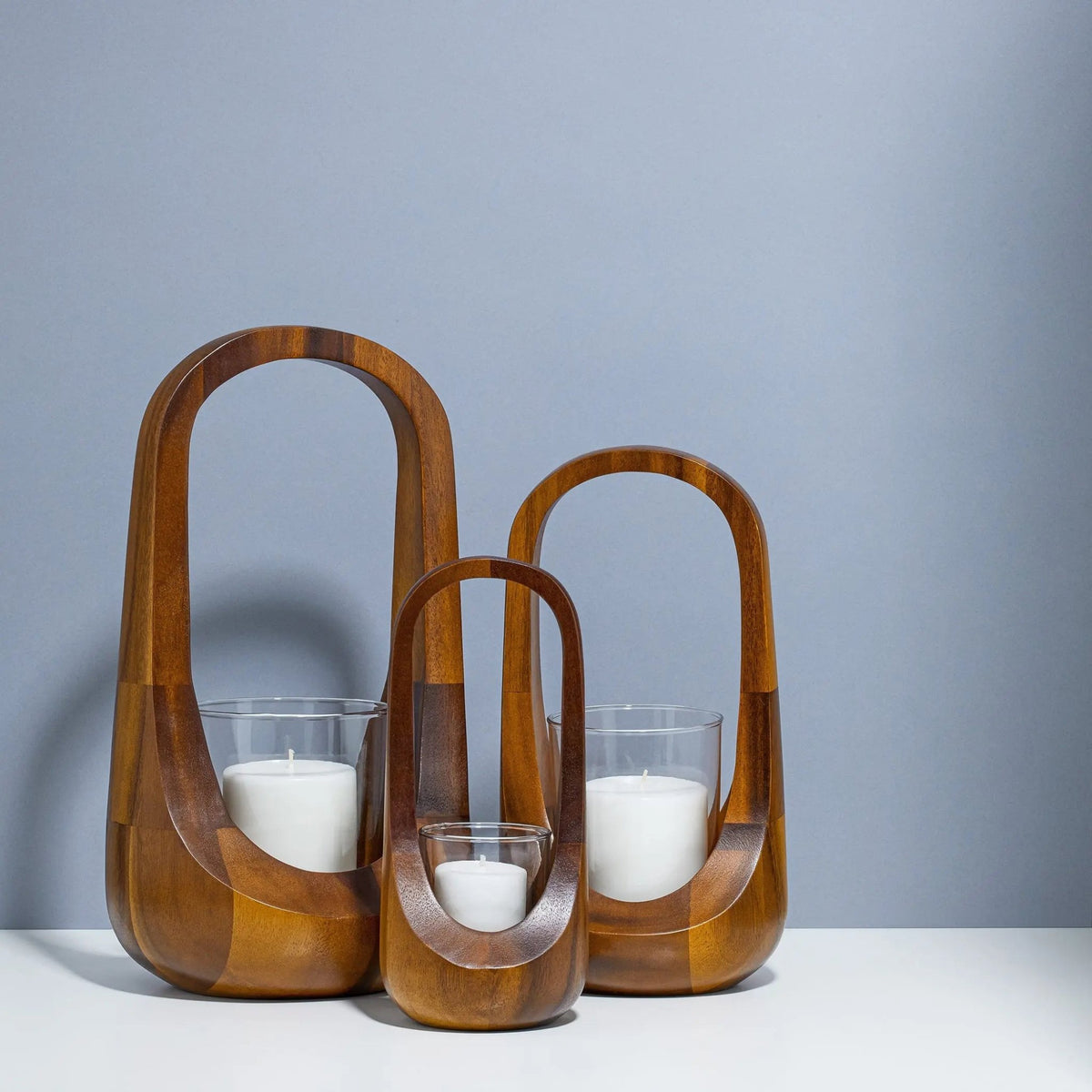 The Classic Lantern is made of beautiful Acacia Wood with a glass hurricane nested inside. Perfect to set the mood, these bohemian inspired lanterns can illuminate any home and create a true sanctuary. For use indoors or in a protected outdoor area, the Classic Lantern is perfect for any home and available in three sizes for a multi-level display.