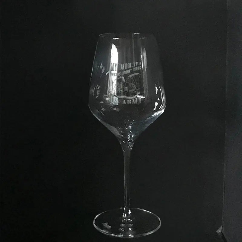 Elevate your drinkware collection with custom US Army boots wine glasses. Personalize them for a unique touch. The perfect gift for military enthusiasts from Crystal House Engravings.