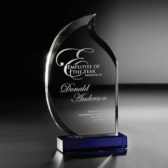 These brilliant cobalt awards display sculpted lines and contemporary forms.