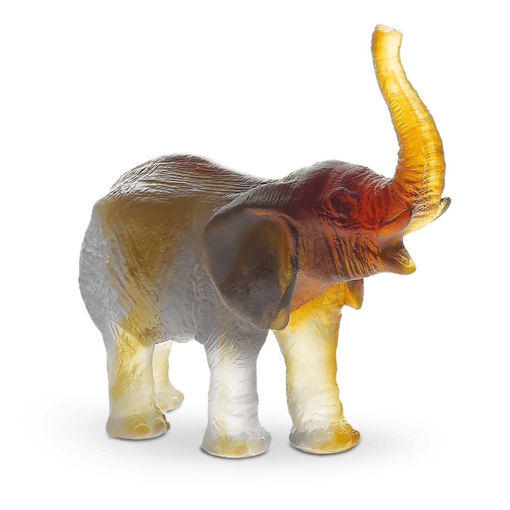 Created by renowned artist Jean François Leroy, celebrated for his highly realistic animal sculptures, this exquisite piece is a testament to his mastery of form and detail. The elephant’s lifelike features, from the texture of its skin to the gentle curve of its trunk, evoke a sense of realism and artistry. The rich amber and green tones of the crystal add depth and vibrancy, making this sculpture a true celebration of nature’s beauty.