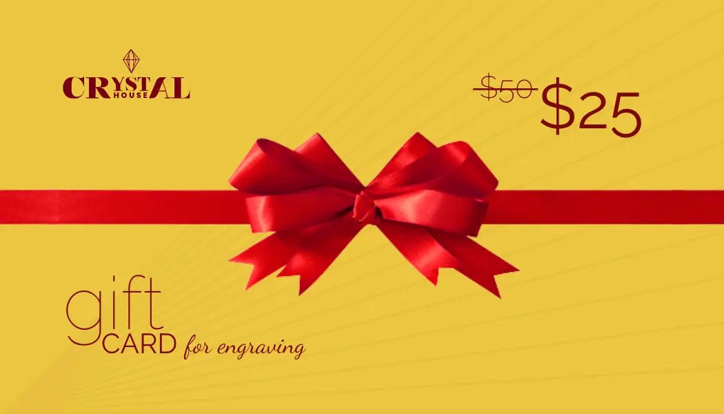 Surprise loved ones with a versatile engraving gift card from Crystal House! Enjoy 50% off engraving services and priority scheduling for orders. Custom engraved keepsakes—jewelry, glassware, or heartfelt mementos—with a personal touch for recipients.