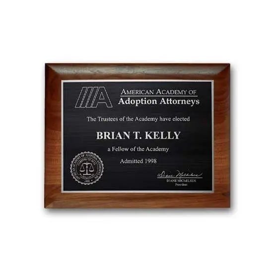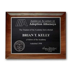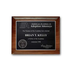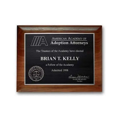 The Etched & Antiqued process creates a soft dark-aged background with bright raised areas to give your image a warm glowing look on a gold or silvertone plate mounted to our walnut plaque with rolled edges.