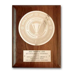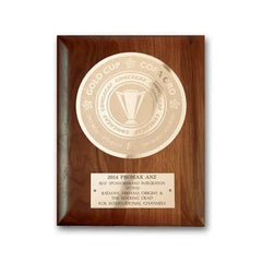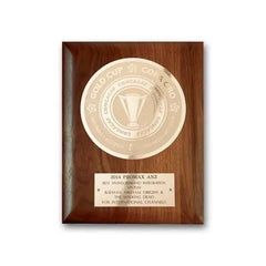 The Etched & Frosted process adds a soft frosted background and brightly polished raised areas for an elegant diamond cut look on a gold or silvertone plate mounted to our walnut plaque with rolled edges.