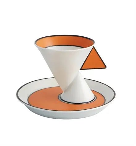 Set 2 Coffee Cups and Saucers Jazz. The break from traditional shapes and patterns- a phenomenon resulting from the Art Deco movement - characterizes the jazz of the 20s and 30s, which constituted both a lifestyle and musical genre, extensible to clothing, accessories, spaces and objects.