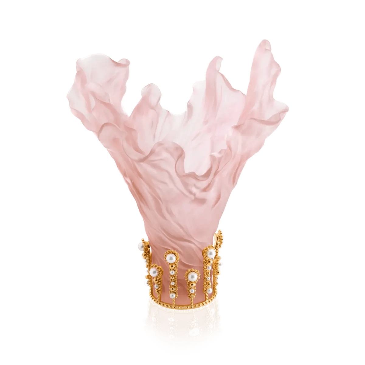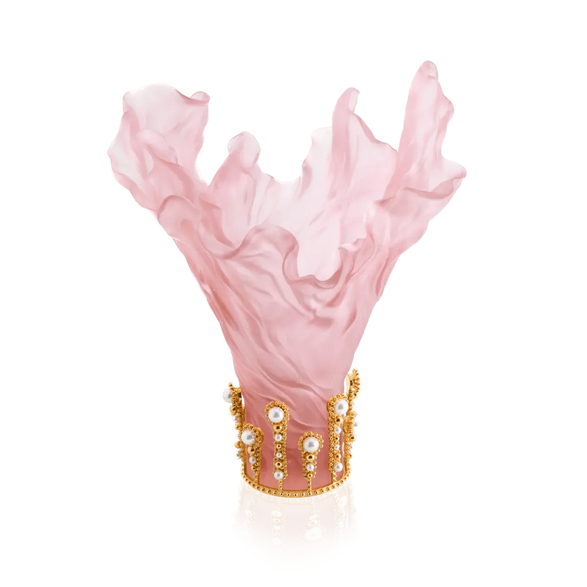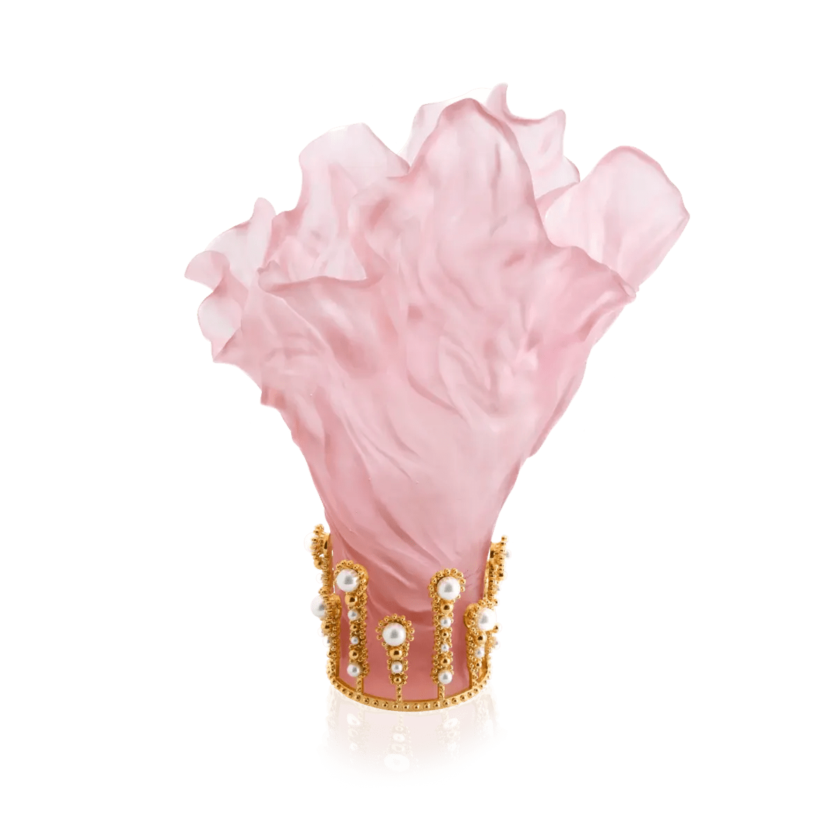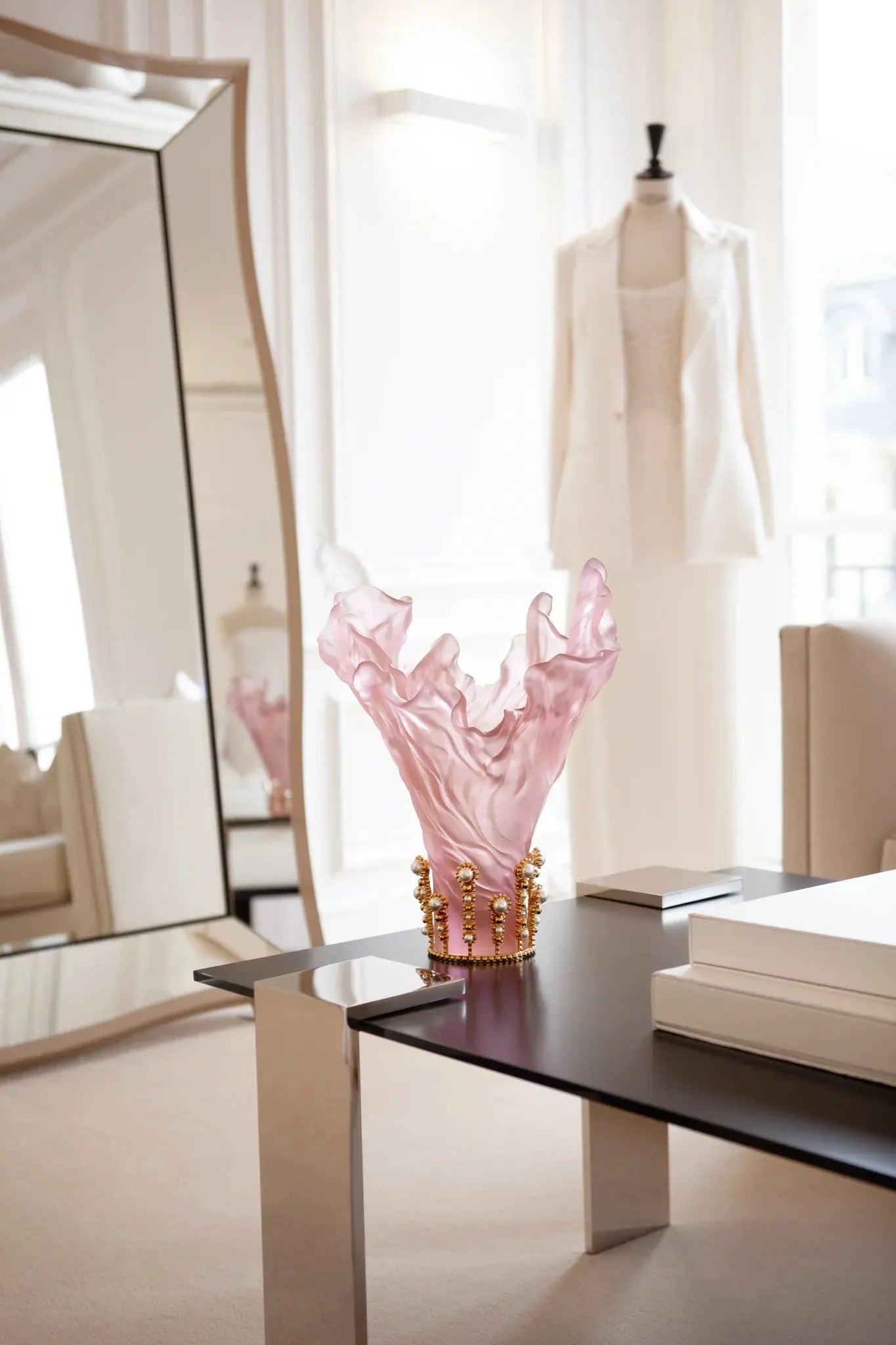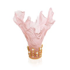 Designed by the acclaimed fashion designer Tamara Ralph, this vase is a testament to Daum’s technical mastery and artistic vision. The slender, feminine silhouette, crystallized in soft pink crystal, evokes the softness and subtlety of Ralph’s creations. The organic curves and flowing drapery pay homage to the Art Nouveau movement, while the intricate details reflect Daum’s unparalleled craftsmanship.