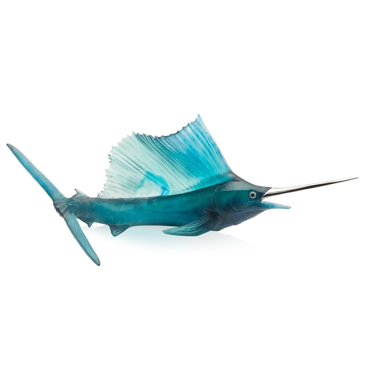 Limited to an exclusive edition of 50, this sailfish sculpture embodies elegance and precision. The intricate details and craftsmanship in this piece capture the essence of the ocean's grandeur. Immerse yourself in the beauty of marine life with this exquisite creation from Daum Inc.