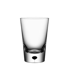 Metropol Tumbler from Orrefors, available as a set of 2, holds 8 oz and is an all-purpose glass ideal for a wide variety of drinks. It is a great complement to the wine glasses in the collection if used as a water glass. The tumbler is mouth-blown in Sweden by expert glassblowers and inspired by Erika Lagerbielke’s classic Intermezzo design, but with a more angular and austere shape and a drop of black sealed inside the base.