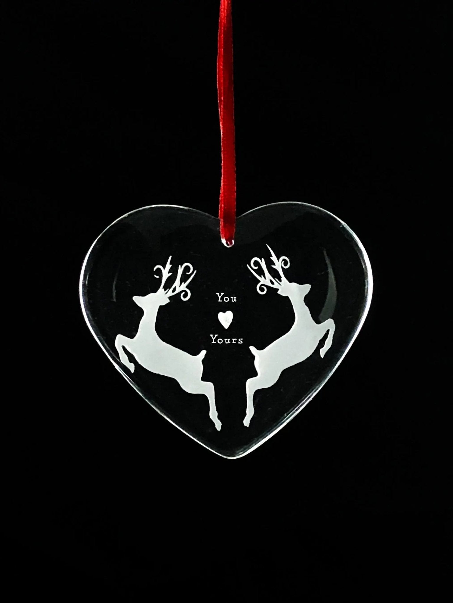 A beautiful crystal heart hand engraved for you and yours. Sure to be a heartfelt gift that you and your dearest can look forward to hanging on the tree for years to come.Â
