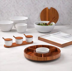 Optimize your dining experience with the Nambe Entertaining Duets Lazy Susan. This rotating centerpiece allows for easy sharing and access to all dishes. Crafted with durable materials, it combines style with functionality, making it a must-have for any gathering. Elevate your hosting game with the Duets Lazy Susan.