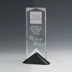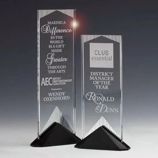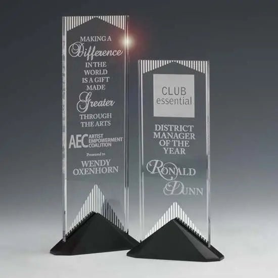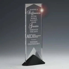 The Reflections award features a sparkling mirror design screened in vertical strips on the back of the acrylic panel. The mirror catches the light and flashes brilliance through a room. Reflect your achievement in the best light with this innovative acrylic mounted into an ebony finished Stonecast base.