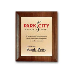 Screenprint your artwork in vibrant color on a brass plate mounted to our walnut plaque with rolled...