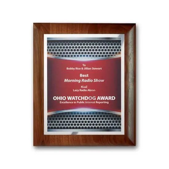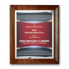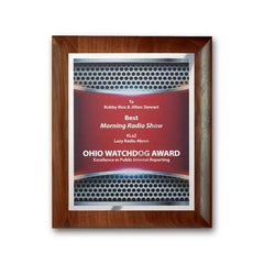 Digitally reproduce your artwork in full color on a brass or aluminum plate, mounted to our walnut...