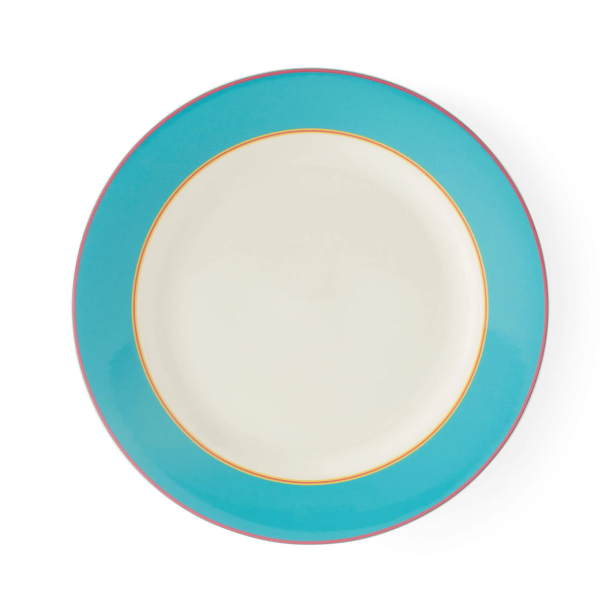 Experience the bold and vibrant design of Spode Kit Kemp's Calypso Turquoise Dinner Plate, measuring 11.5 inches....