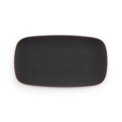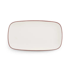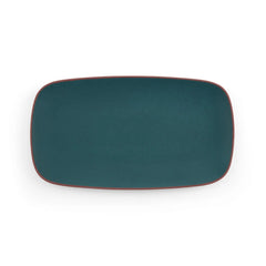 Inspired by the topography and architecture of New Mexico, Taos combines clean lines with a bold color palette. Each piece in the collection is finished with an adobe-colored rim and a speckled, reactive glaze. With soft square edges, the Taos Soft Rectangular Platter can easily mix and match, complementing any table.