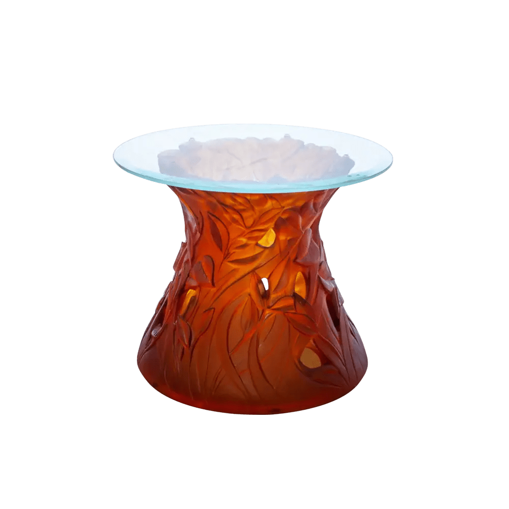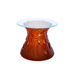Available in captivating color combinations like blue & grey and amber, theVegetal Side Tablestands at 19.7" tall, with a glass top diameter of 23.6" and a crystal base diameter of 20.5". Weighing 104.7 lbs, it is a substantial yet elegant addition to any space. Imagine it gracing your living room, study, or lounge, its intricate design and natural motifs adding a touch of sophistication and artistry to your surroundings.