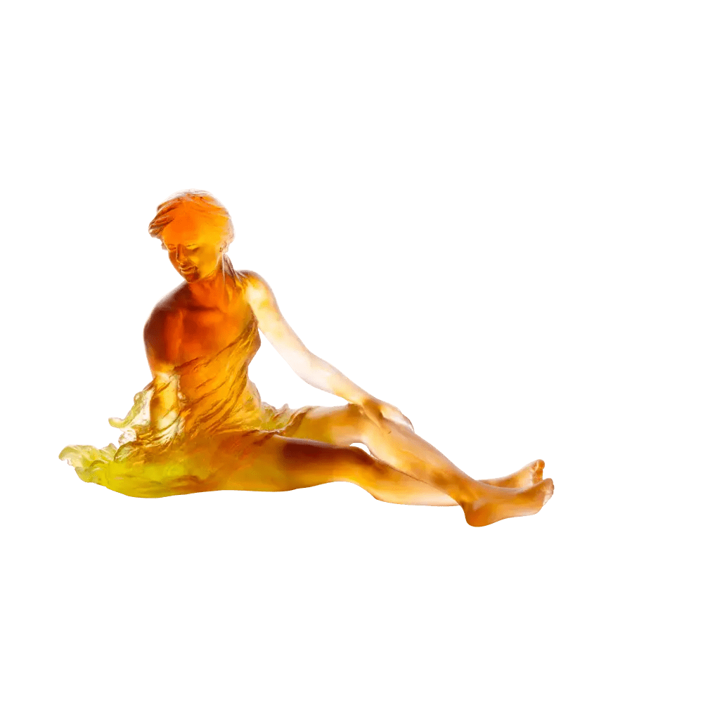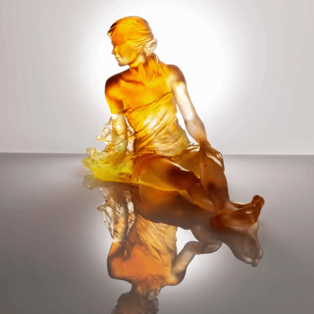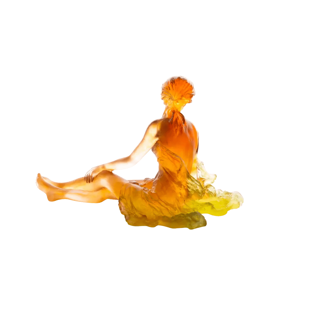 Crafted by the acclaimed artist Luo Li Rong, this limited-edition piece is a testament to Daum’s technical mastery and artistic vision. The intricate drapery and lifelike details create an incredible illusion of movement, as if the figure has been frozen in a moment of eternal grace. The amber tones of the crystal add warmth and depth, while the soft reflections and transparency bring the sculpture to life.
